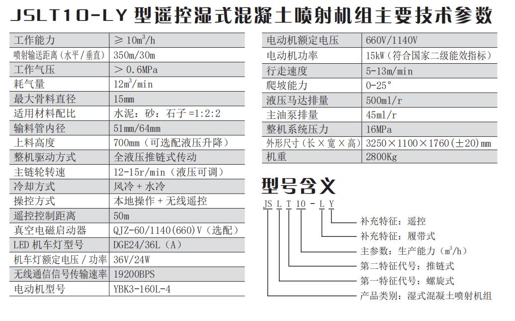 JSLT10-LY 型遥控湿式混凝土喷射机组优点: